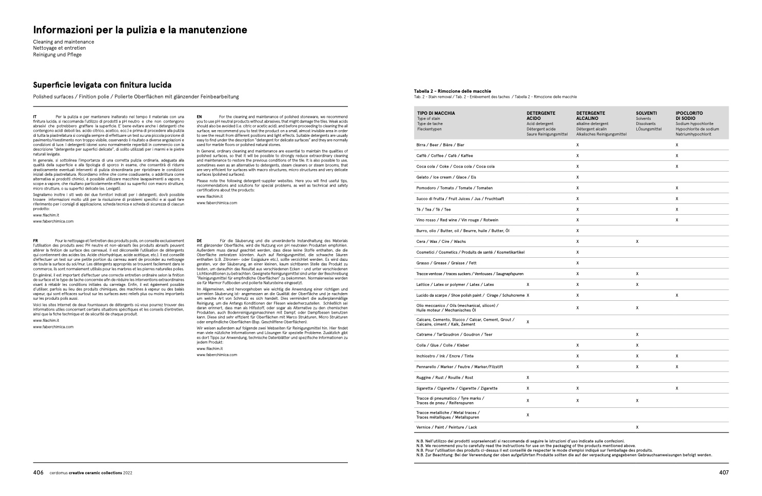 Tab. 2 - Stain removal / Tab. 2 - Enlèvement des taches / Tabella 2 - Rimozione delle macchie