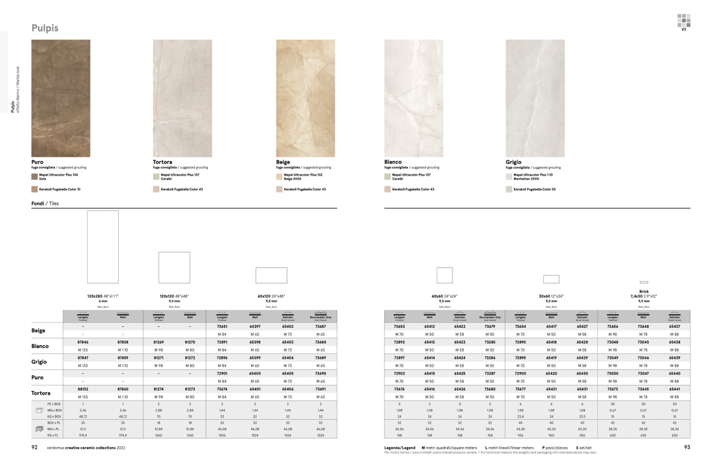 Per motivi tecnici i pesi e imballi sopra indicati possono variare. / For technical reasons the weights and packaging info indicated above may vary.