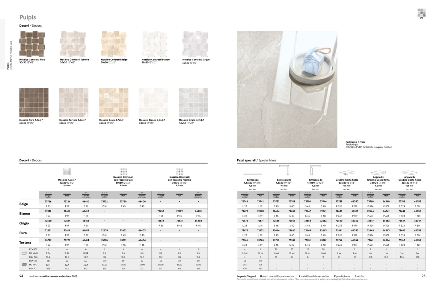 Per motivi tecnici i pesi e imballi sopra indicati possono variare. / For technical reasons the weights and packaging info indicated above may vary.