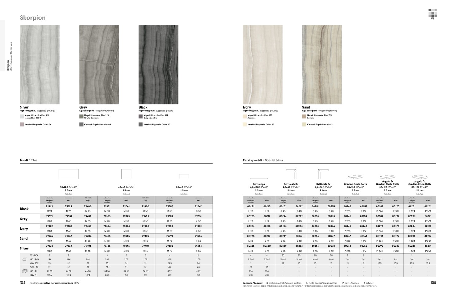 Per motivi tecnici i pesi e imballi sopra indicati possono variare. / For technical reasons the weights and packaging info indicated above may vary.