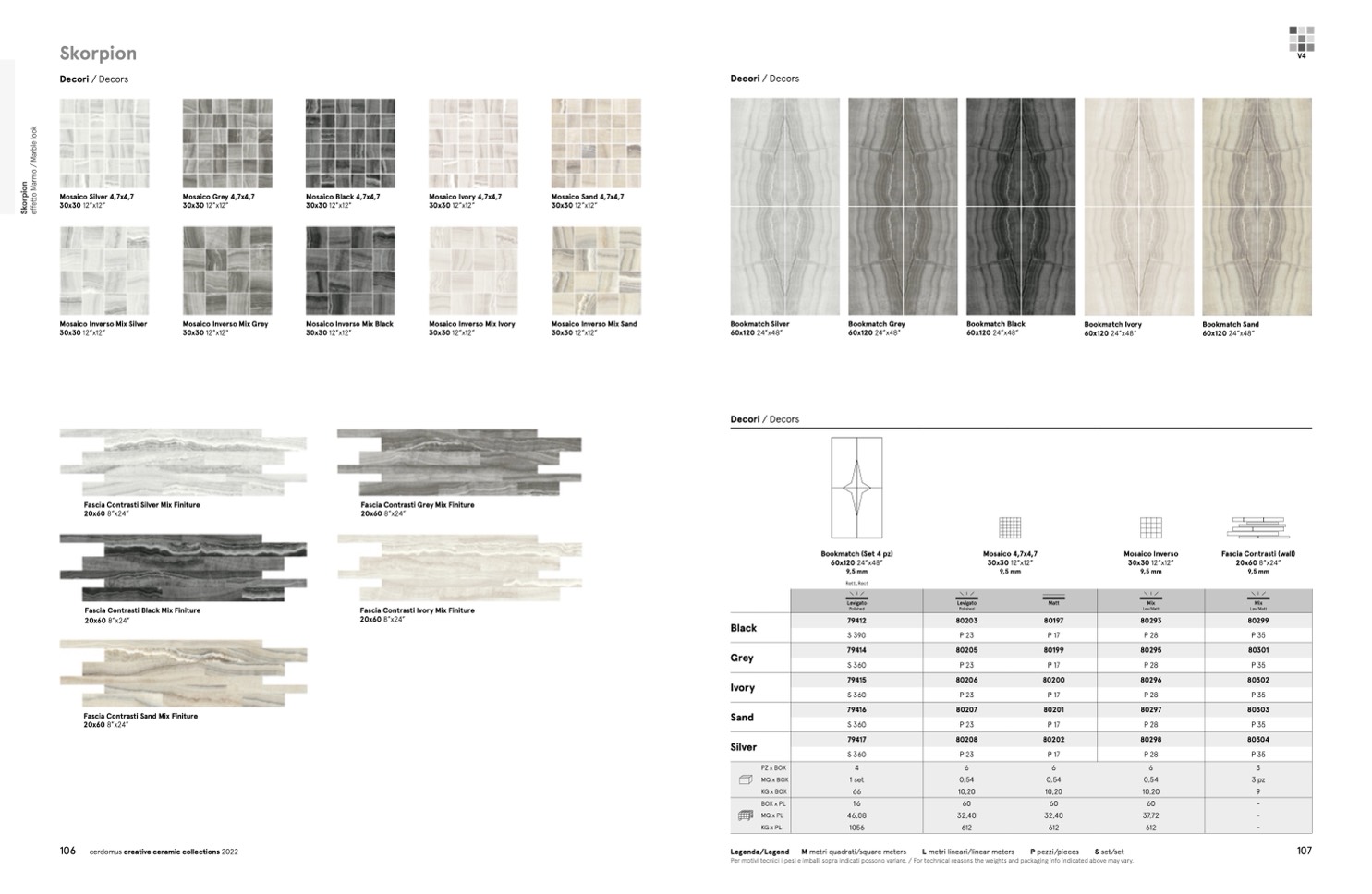 Per motivi tecnici i pesi e imballi sopra indicati possono variare. / For technical reasons the weights and packaging info indicated above may vary.