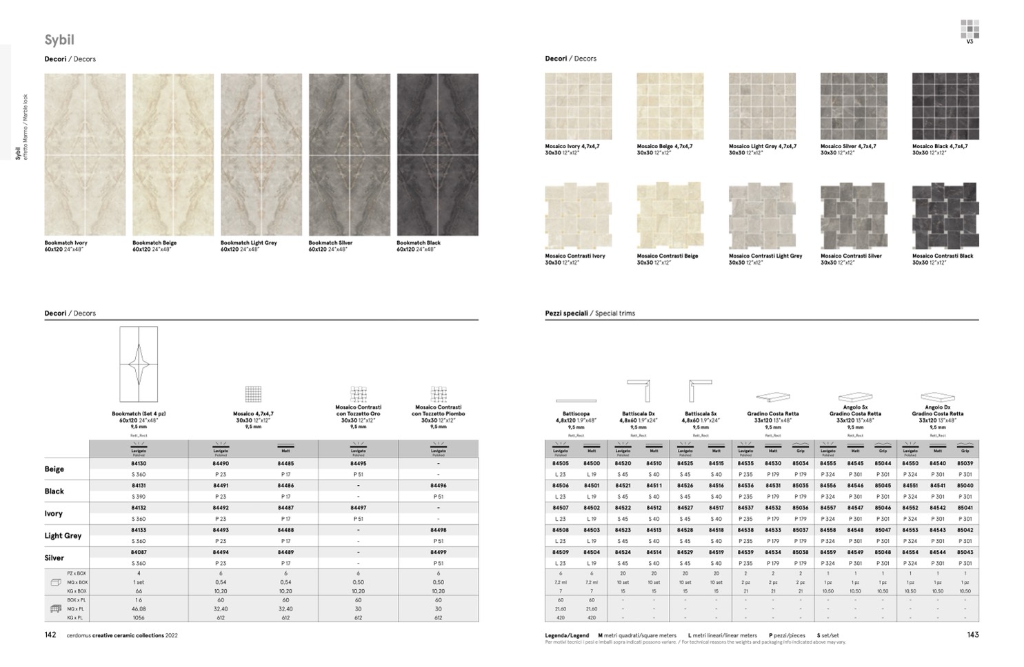 Per motivi tecnici i pesi e imballi sopra indicati possono variare. / For technical reasons the weights and packaging info indicated above may vary.