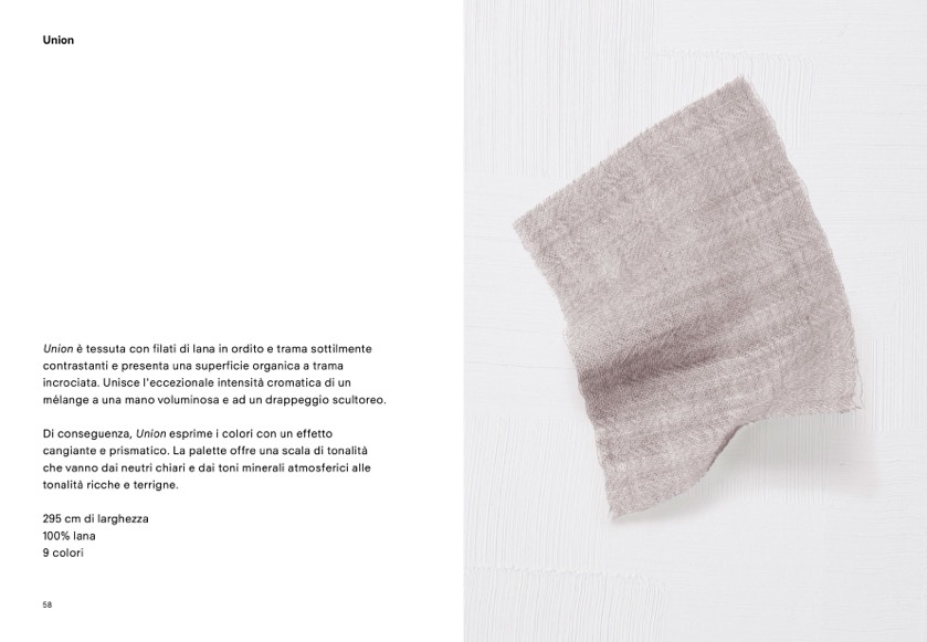 Union è tessuta con filati di lana in ordito e trama sottilmente