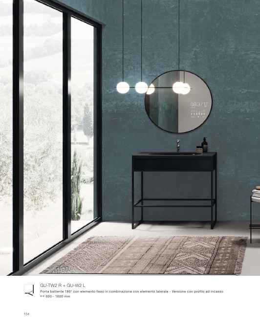 Porta battente 180° con elemento fisso in combinazione con elemento laterale - Versione con profilo ad incasso