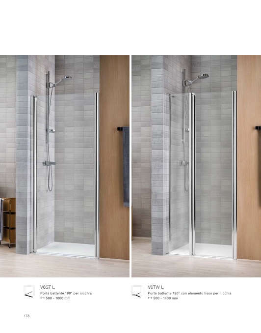 Porta battente 180° con elemento fisso per nicchia