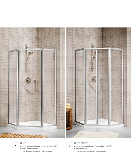 Cabina pentagonale con 2 porte battenti 180°