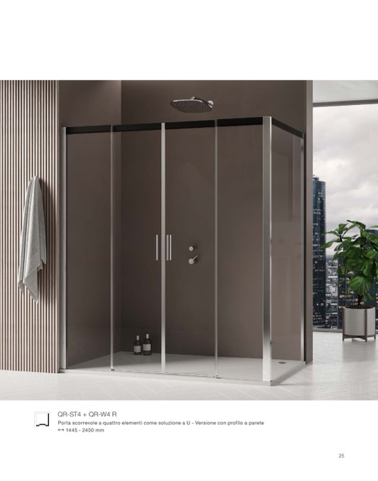 Porta scorrevole a quattro elementi come soluzione a U - Versione con profilo a parete