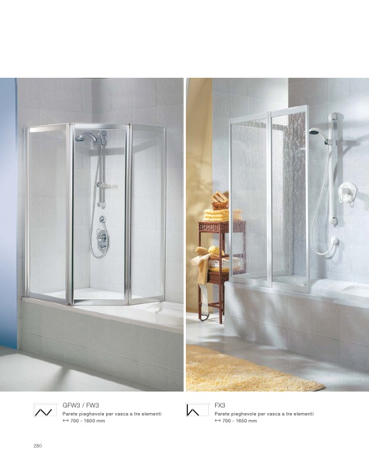 Parete pieghevole per vasca a tre elementi