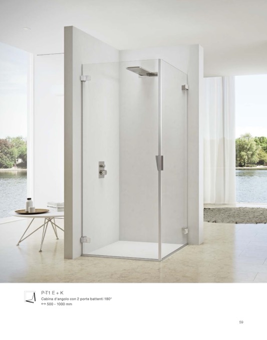 Cabina d‘angolo con 2 porte battenti 180°