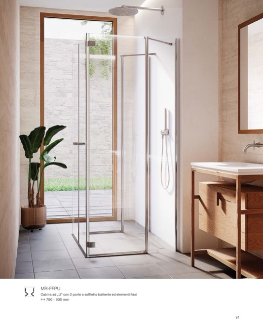 Cabina ad „U“ con 2 porte a soffietto battente ed elementi fissi