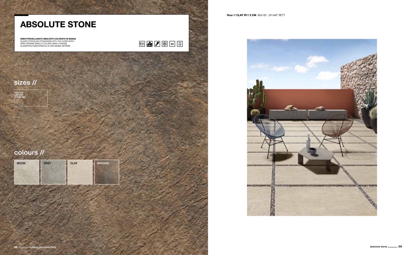 floor // CLAY R11 2 CM 60x120 . 24”x48” RETT
