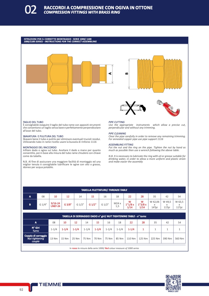 TABELLA FILETTATURE/ THREADS TABLE