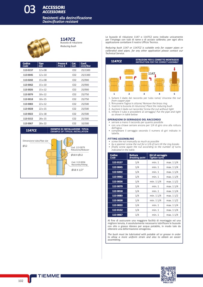 Le bussole di riduzione 1147 o 1147CZ sono indicate unicamente