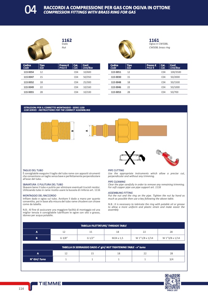 Utilizzando tubo in rame ricotto usare la bussola di rinforzo art. 1116