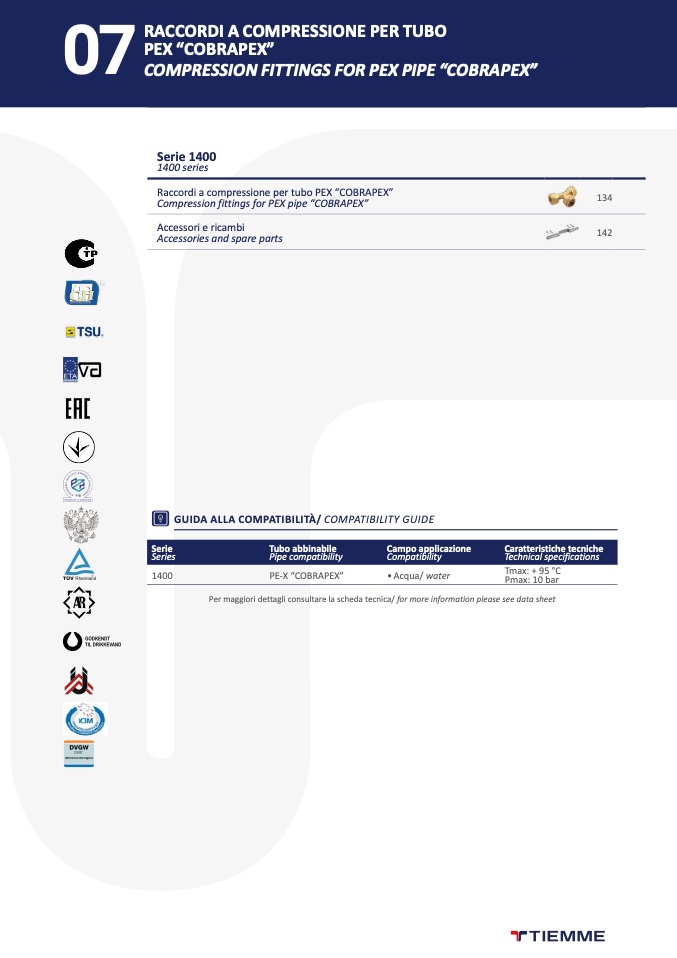 COMPRESSION FITTINGS FOR PEX PIPE “COBRAPEX”