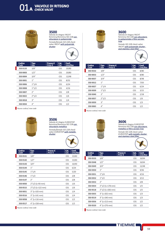 Valvola di ritegno YACHT