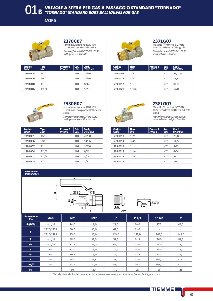 Tutte le dimensioni (ad eccezione del PN) sono espresse in mm/ All dimensions (except for PN) are in mm