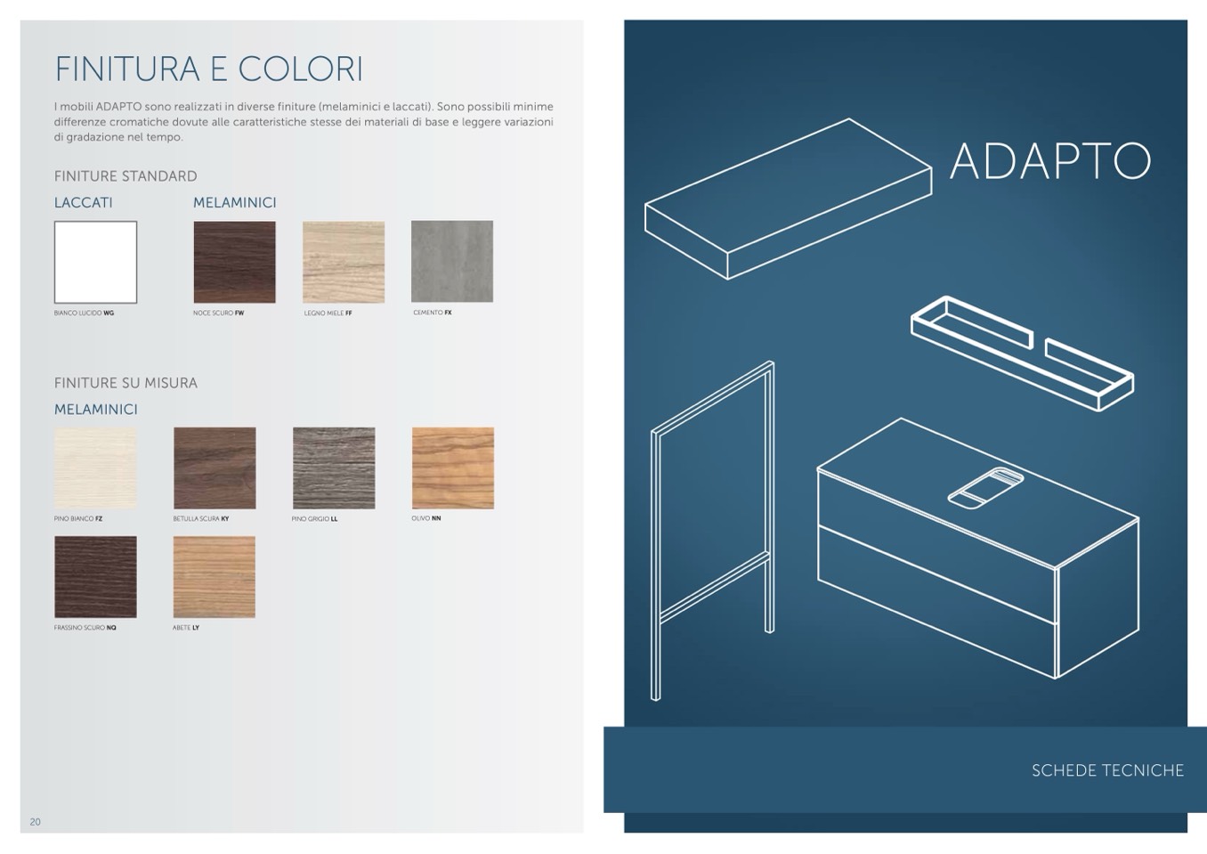 I mobili ADAPTO sono realizzati in diverse finiture (melaminici e laccati). Sono possibili minime