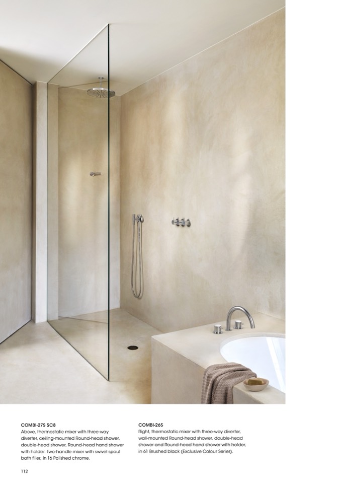 Above, thermostatic mixer with three-way