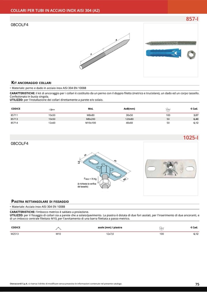 COLLARI PER TUBI IN ACCIAIO INOX AISI 304 (A2)