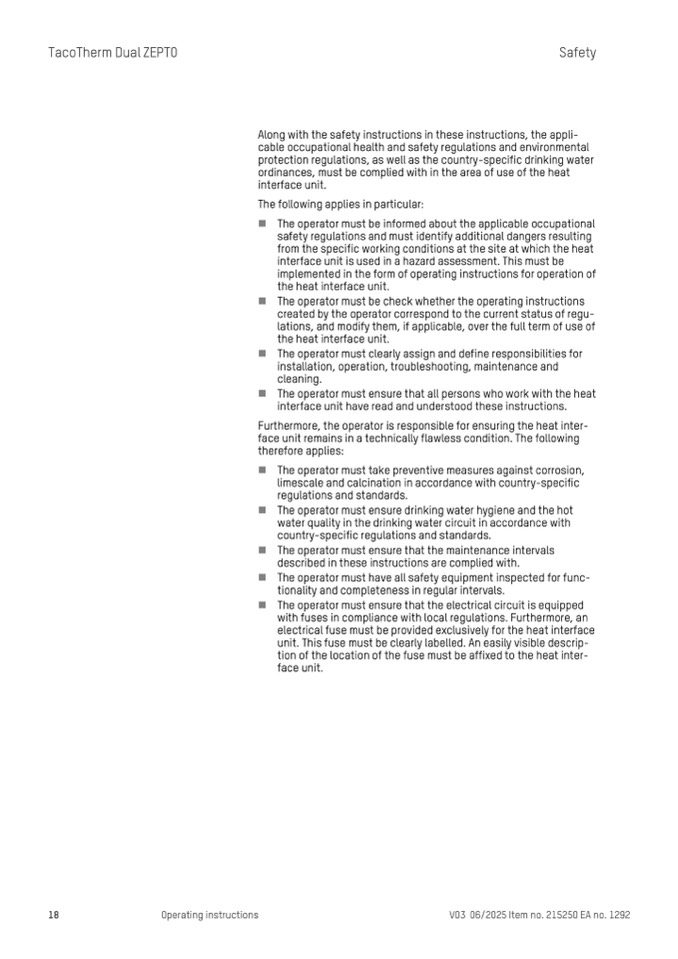 Furthermore, the operator is responsible for ensuring the heat inter-