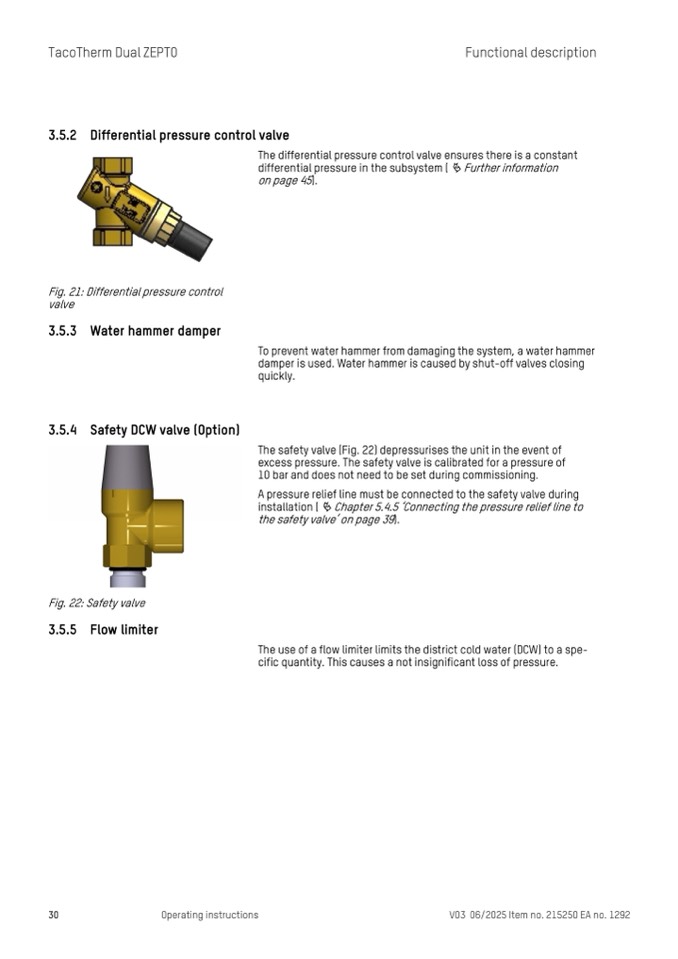 The safety valve (Fig. 22) depressurises the unit in the event of