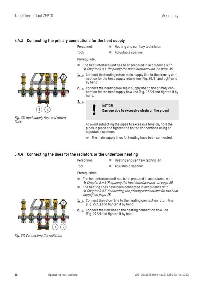 nection for the heat supply return line (Fig. 26/1) and tighten it