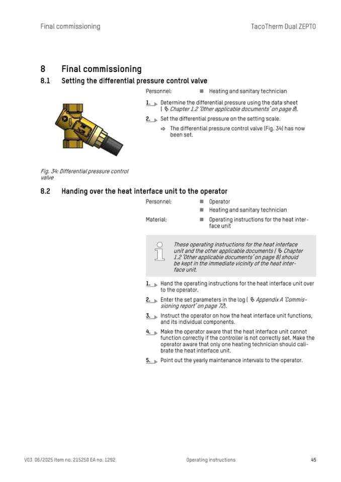 Hand the operating instructions for the heat interface unit over