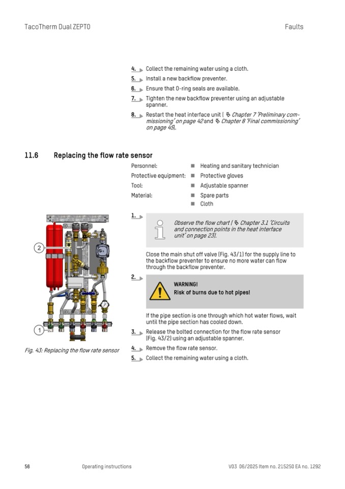 Fig. 43: Replacing the flow rate sensor