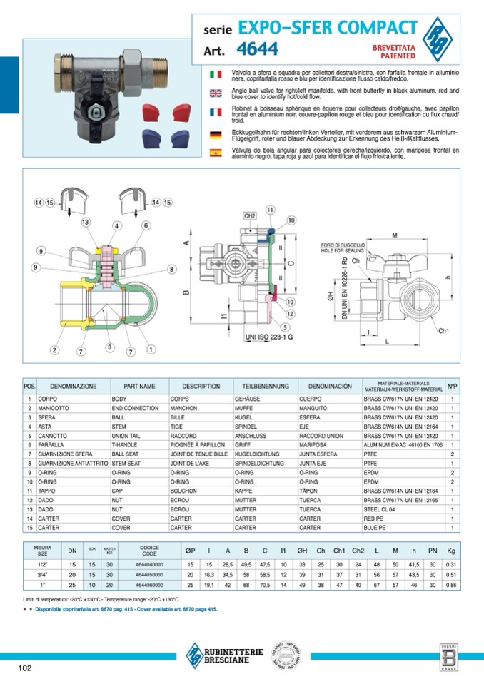 Limiti di temperatura: -20°C +130°C - Temperature range: -20°C +130°C.
