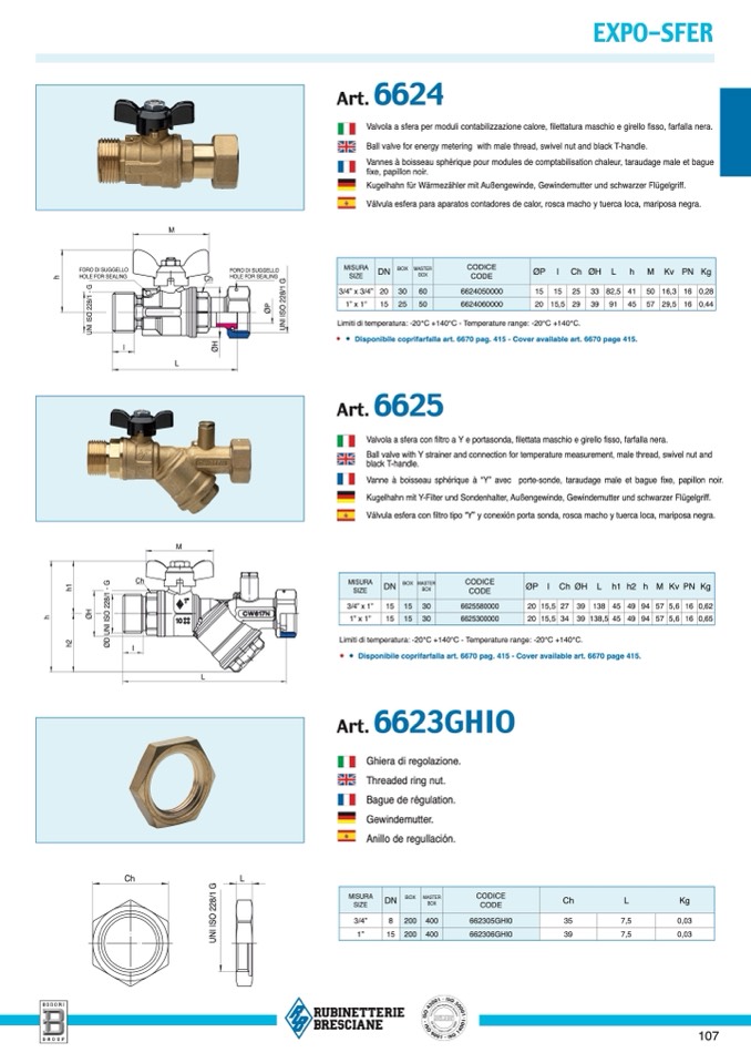 Limiti di temperatura: -20°C +140°C - Temperature range: -20°C +140°C.