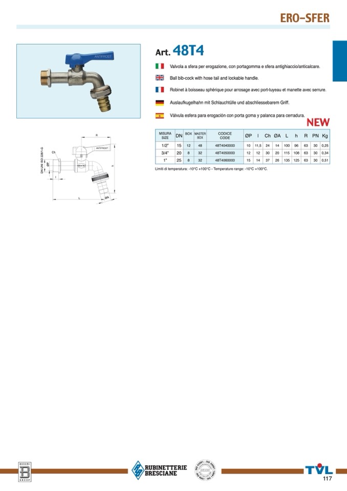 Limiti di temperatura: -10°C +100°C - Temperature range: -10°C +100°C