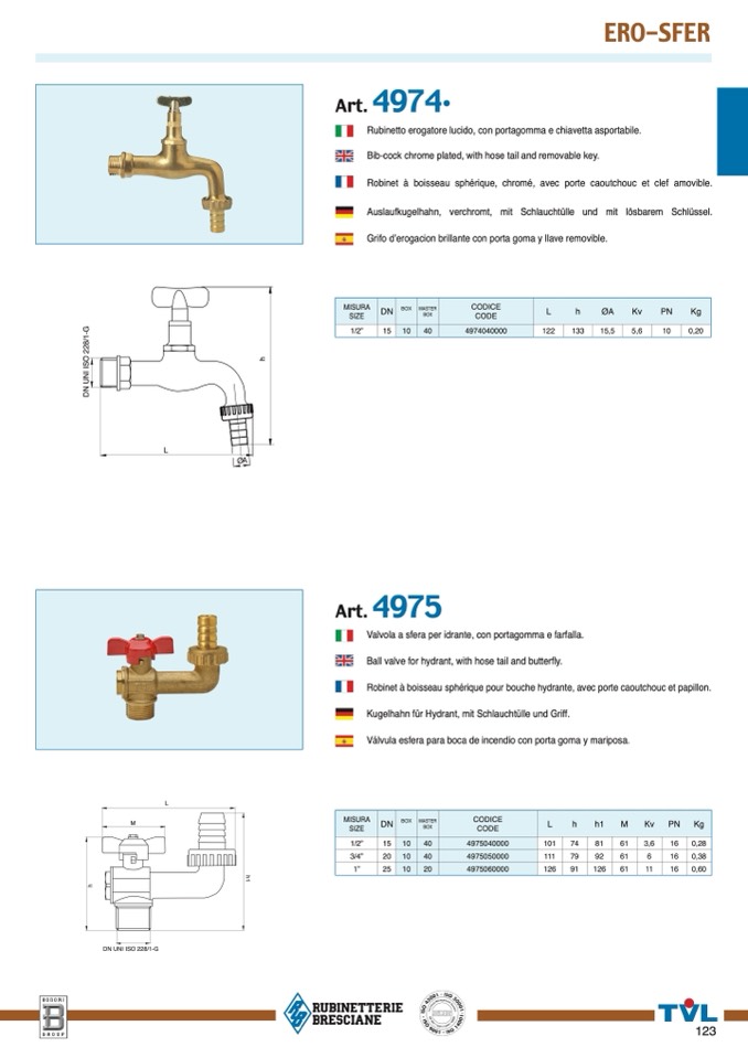 Valvola a sfera per idrante, con portagomma e farfalla