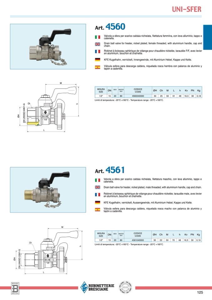 Limiti di temperatura: -20°C +160°C - Temperature range: -20°C +160°C