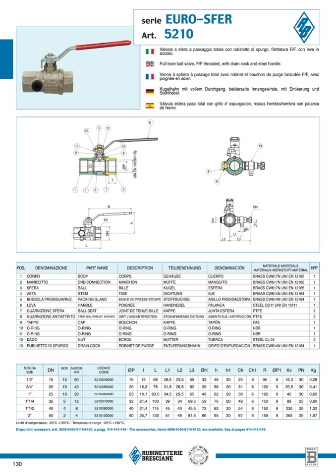 Limiti di temperatura: -20°C +160°C - Temperature range: -20°C +160°C.