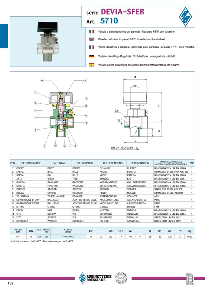 Limiti di temperatura: -10°C +90°C - Temperature range: -10°C +90°C.