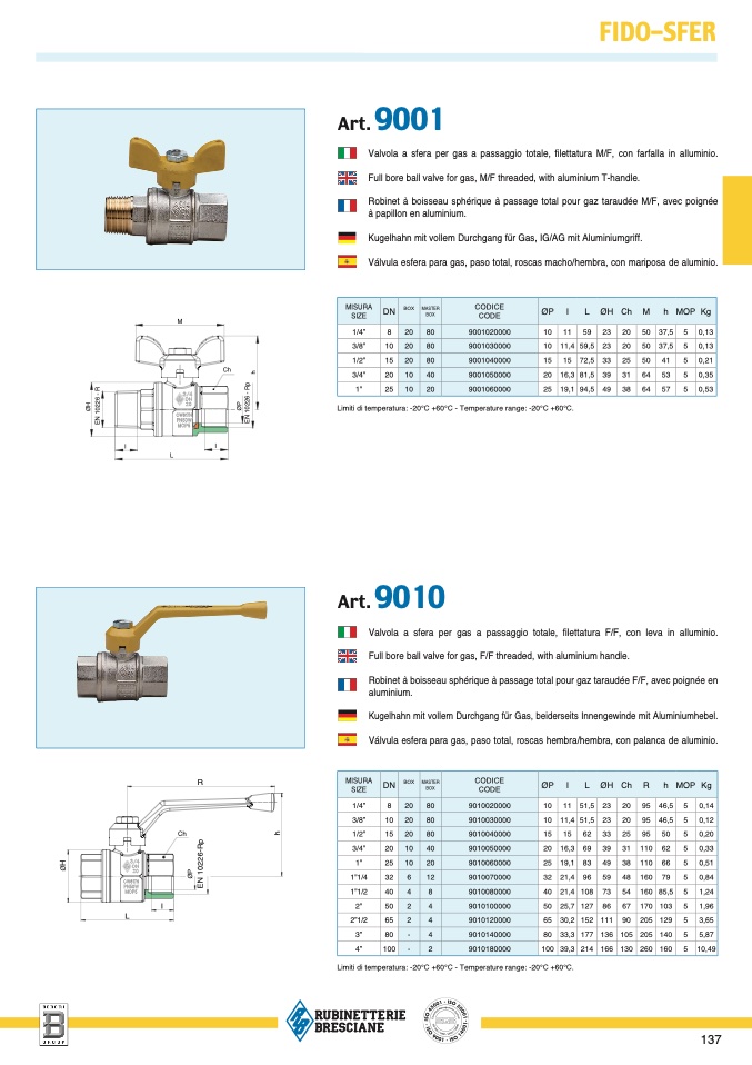 Limiti di temperatura: -20°C +60°C - Temperature range: -20°C +60°C.