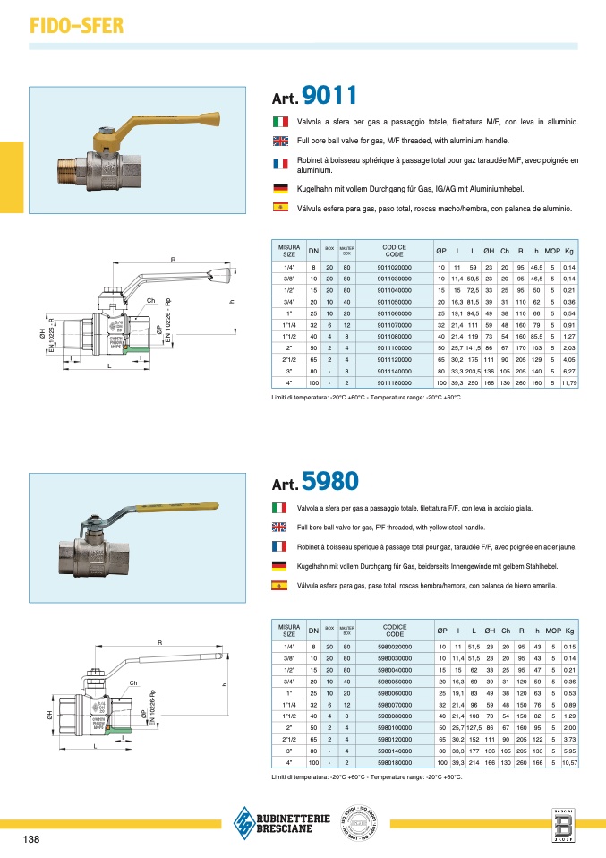 Limiti di temperatura: -20°C +60°C - Temperature range: -20°C +60°C.