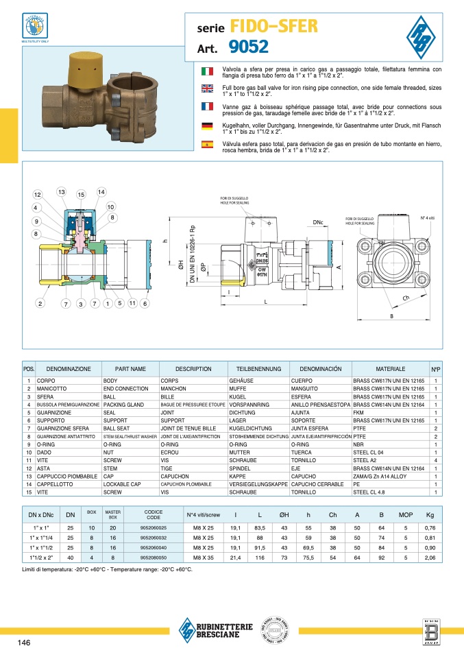 Limiti di temperatura: -20°C +60°C - Temperature range: -20°C +60°C