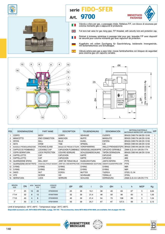 Limiti di temperatura: -20°C +60°C - Temperature range: -20°C +60°C