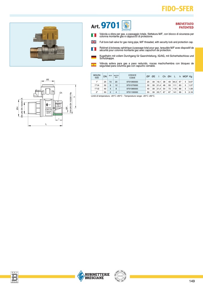 Limiti di temperatura: -20°C +60°C - Temperature range: -20°C +60°C.