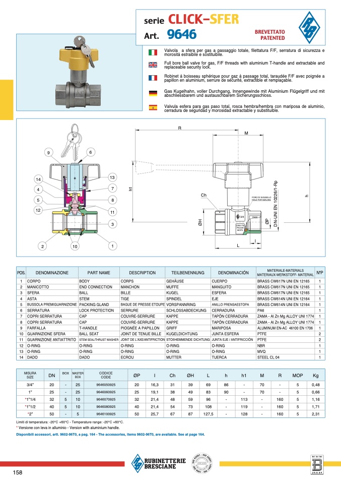 Limiti di temperatura: -20°C +60°C - Temperature range: -20°C +60°C