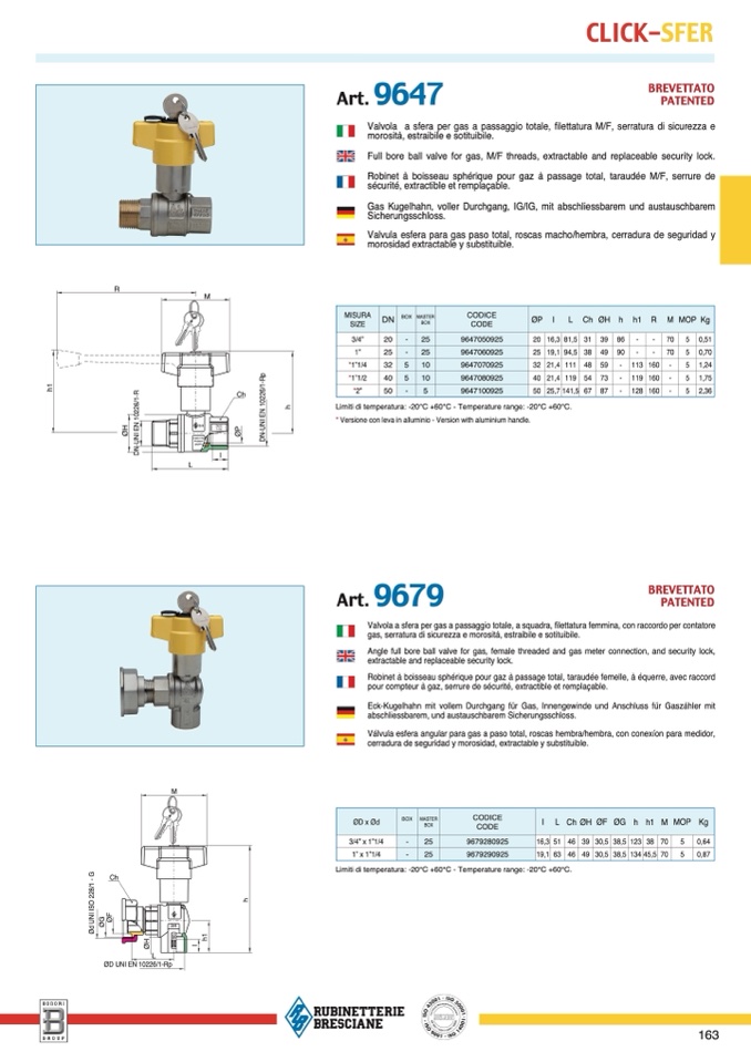 Full bore ball valve for gas, M/F threads, extractable and replaceable security lock.