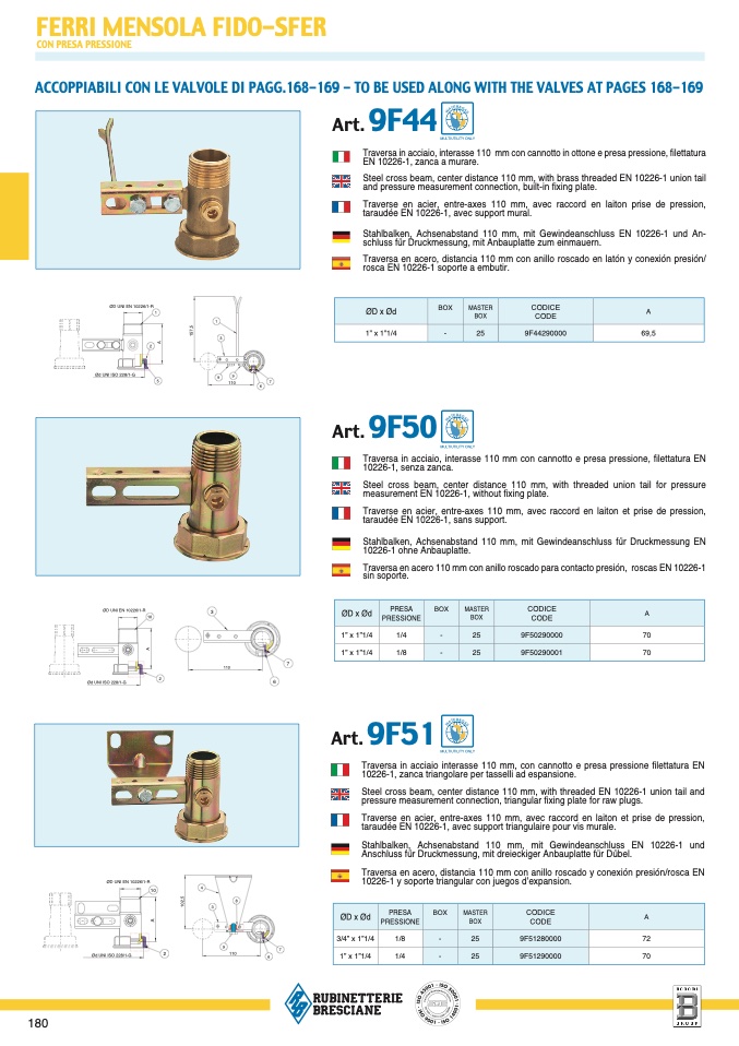 ACCOPPIABILI CON LE VALVOLE DI PAGG.168-169 - TO BE USED ALONG WITH THE VALVES AT PAGES 168-169