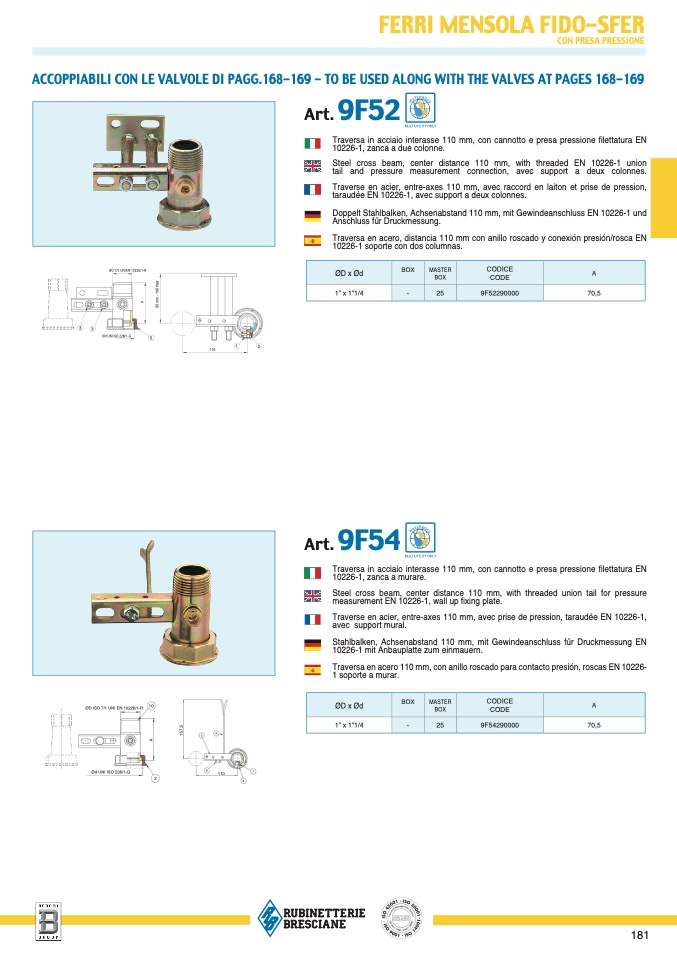 ACCOPPIABILI CON LE VALVOLE DI PAGG.168-169 - TO BE USED ALONG WITH THE VALVES AT PAGES 168-169