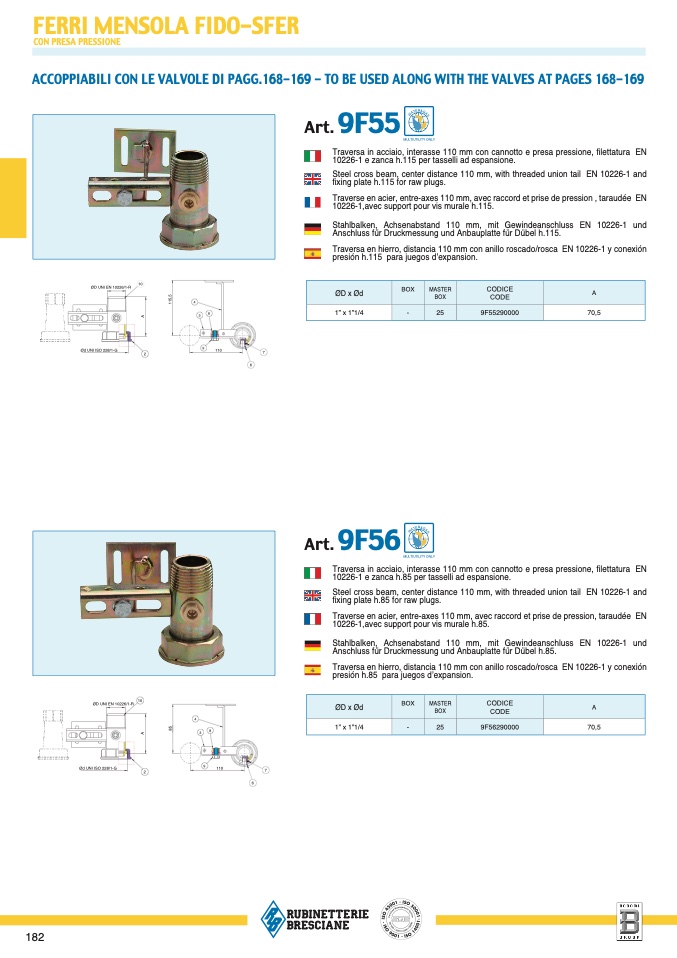 ACCOPPIABILI CON LE VALVOLE DI PAGG.168-169 - TO BE USED ALONG WITH THE VALVES AT PAGES 168-169