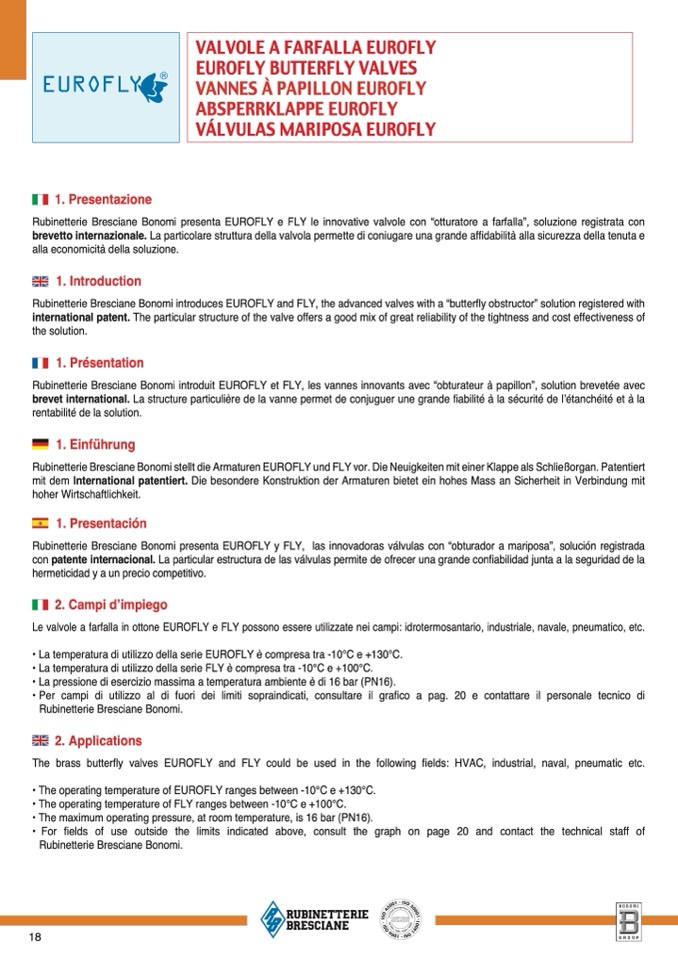 Rubinetterie Bresciane Bonomi stellt die Armaturen EUROFLY und FLY vor. Die Neuigkeiten mit einer Klappe als Schließorgan. Patentiert