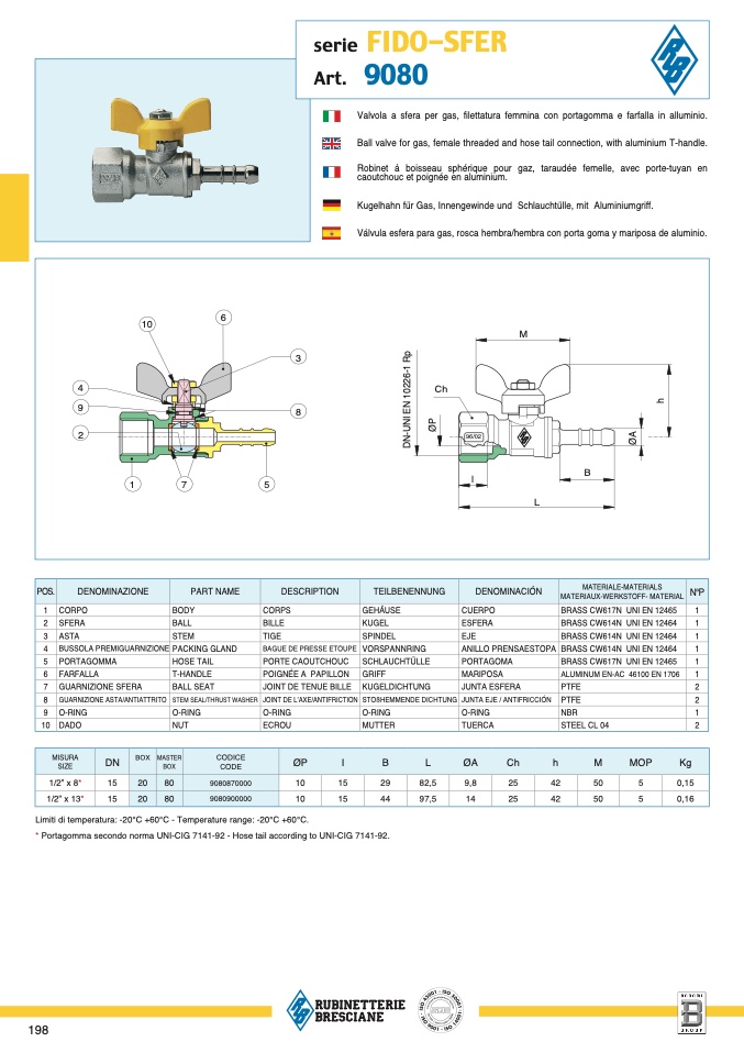 Limiti di temperatura: -20°C +60°C - Temperature range: -20°C +60°C