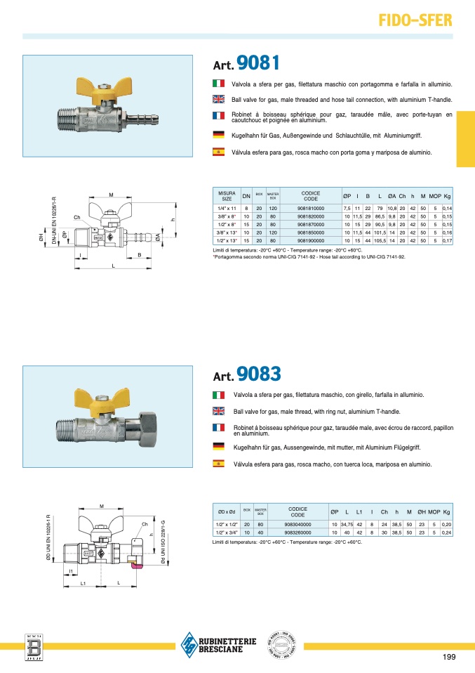 Limiti di temperatura: -20°C +60°C - Temperature range: -20°C +60°C.