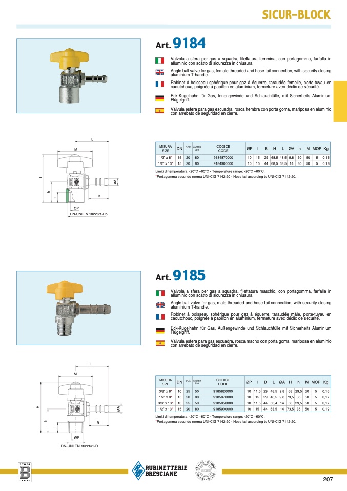Limiti di temperatura: -20°C +60°C - Temperature range: -20°C +60°C.